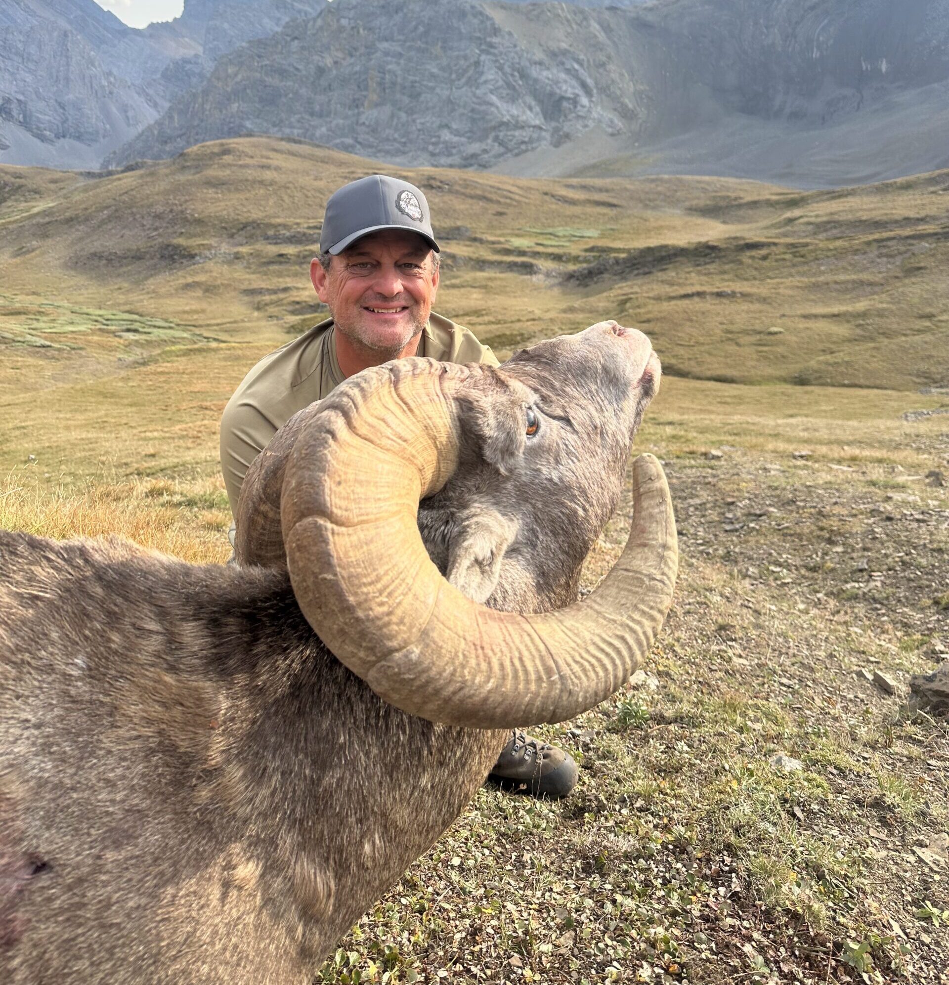 In our area we have a limited number of bighorn tags available to us each year. And over the years has produced a wide range of trophy sheep in regards to size and age. Bighorn sheep are quite larger in body size compared to other wild sheep. Hunting these animals is not for the faint of heart. They live in rough and rugged country. A legal trophy sheep in our area must be ⅘’s curl or larger. Opening up more opportunities for our clients than full curl only areas. Once you have harvested a ram it is required to be inspected by a biologist and then it will be plugged and registered with the province. Season runs Sept 1st-Oct 15th.